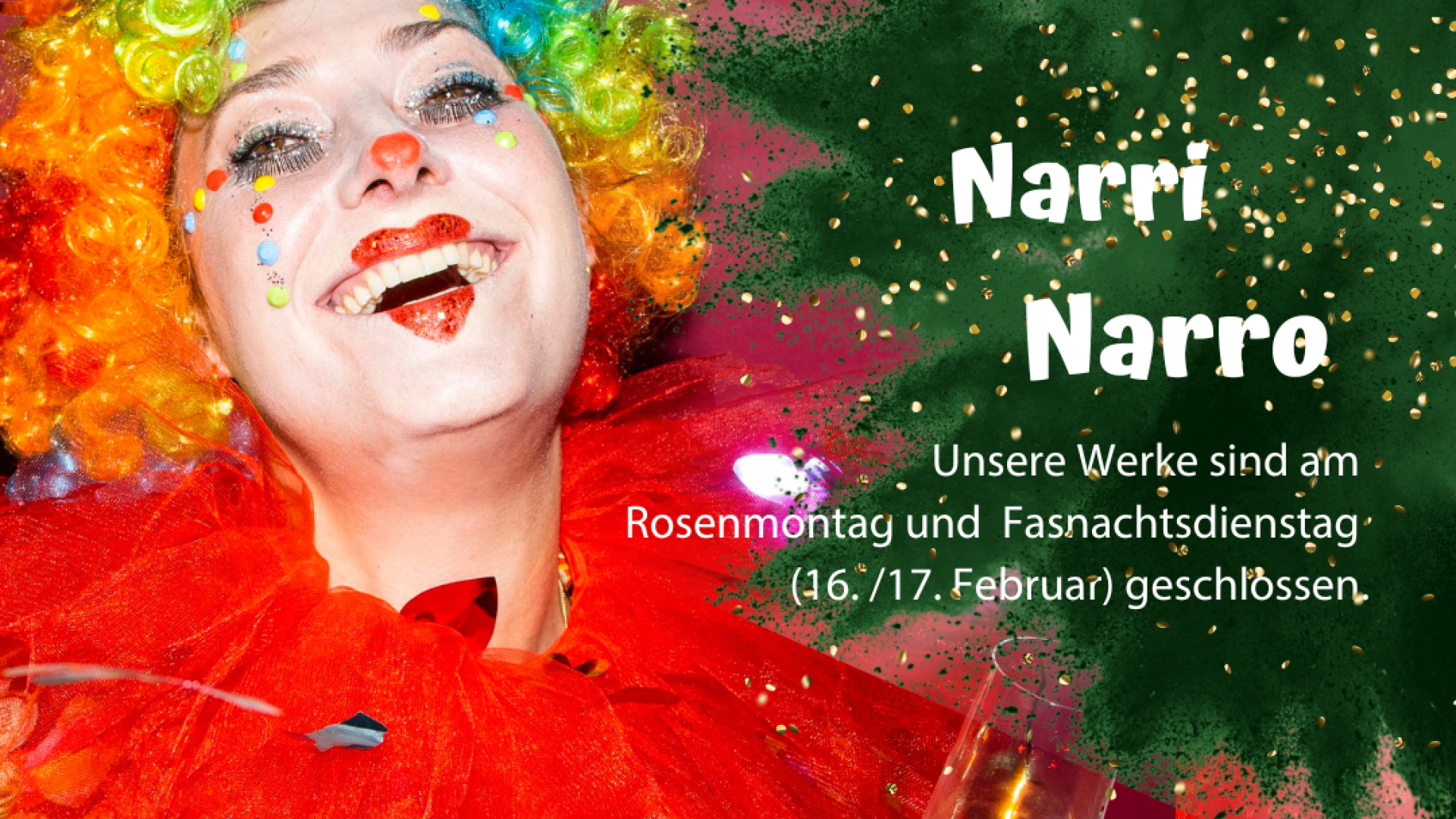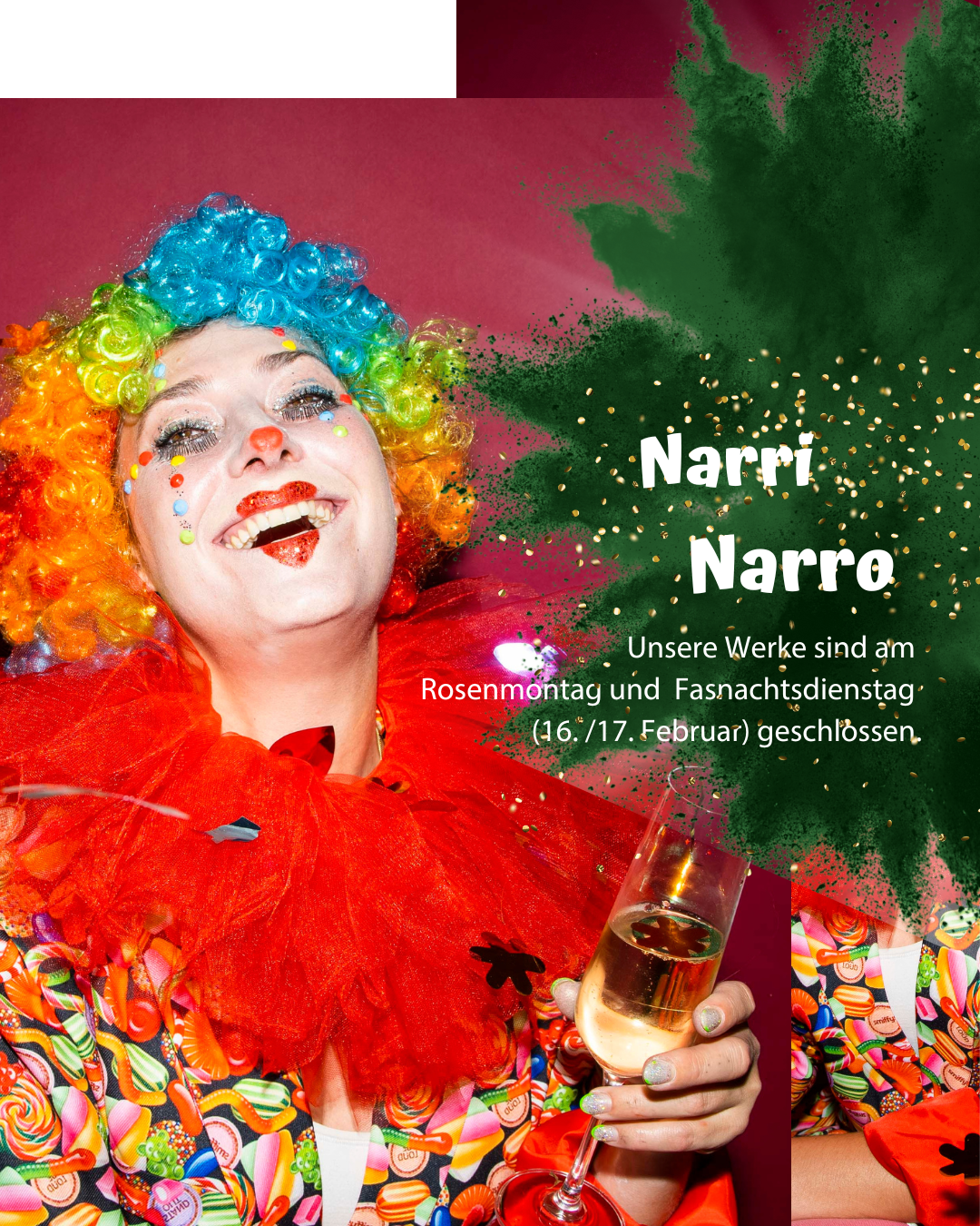 Am Rosenmontag und Fasnachtsdienstag machen wir eine kleine Fasnachtspause - unsere Werke bleiben an diesen Tagen geschlossen.